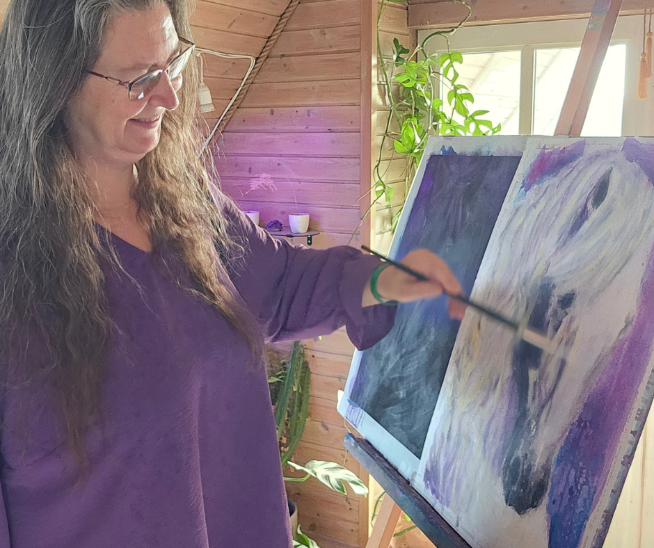 Som barn tegnede Anna Maria hele tiden. I dag maler hun – især heste – for at lindre, opløfte og bringe mennesker hjem i sig selv. Når du ser på et af Anna Maria’s værker, ønsker hun, at det føles som terapi i din egen stue. Hun er ikke til stede som terapeut – men hendes kunst er.