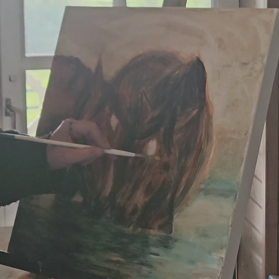 Dette oliemaleri er ikke blot et motiv – det er et sted. Et sted, hvor noget i dig falder til ro. Hvor du træder ud af støjen og ind i et landskab af forbundethed, nærvær og sanselig ro.